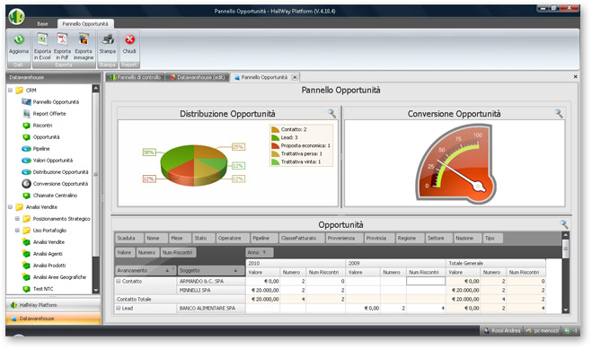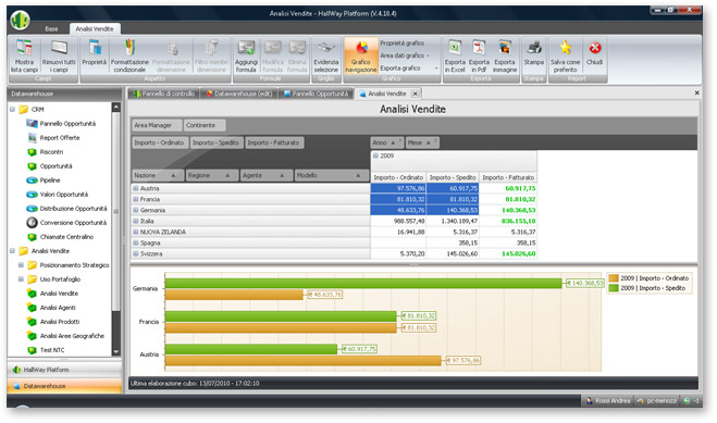 Currently our customers can finally take advantage of a completed environment, which allows them to create several types of report, such as Dashboard , Report Pivot Rolap, Report Pivot OLAP, graphs, Multi-level Report and Geomarketing Report (thanks to the integration with Microsoft MapPoint©).