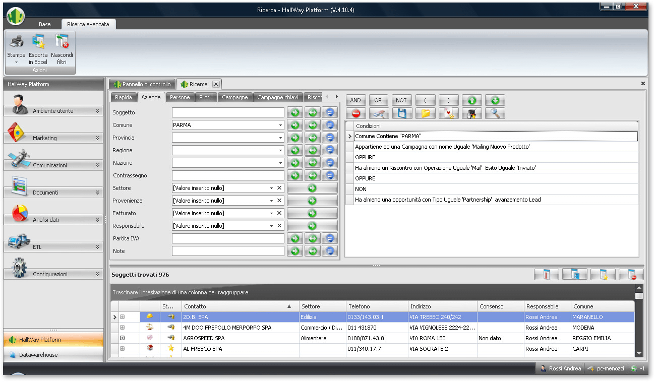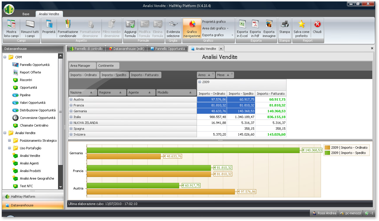 Currently our customers can finally take advantage of a completed environment, which allows them to create several types of report, such as Dashboard , Report Pivot Rolap, Report Pivot OLAP, graphs, Multi-level Report and Geomarketing Report (thanks to the integration with Microsoft MapPoint©).