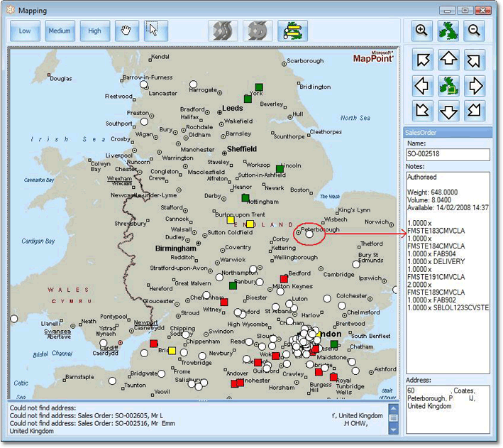 Integration with Mappoint allows the user to view and sanity check vehicle routes and provide drivers with routing information if required.