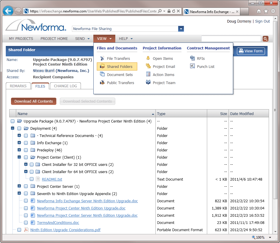 The Newforma Info Exchange web application is a secure site hosted by our customers for their clients as a portal to access and update project information.