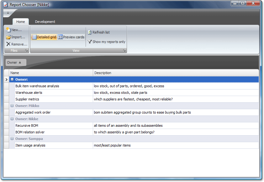 Data to the new reports is aggregated dynamically from the existing database with absolutely no modification or re-configuration necessary for the existing ERP platform. This guarantees a risk-free desktop deployment as the employees of the customer can still use the old reports if something would fail in the new reporting client. To help achieve a smooth and reliable back-end operation, the server-side data components are stress-tested in addition to static code checking and unit testing which are performed on both tiers.