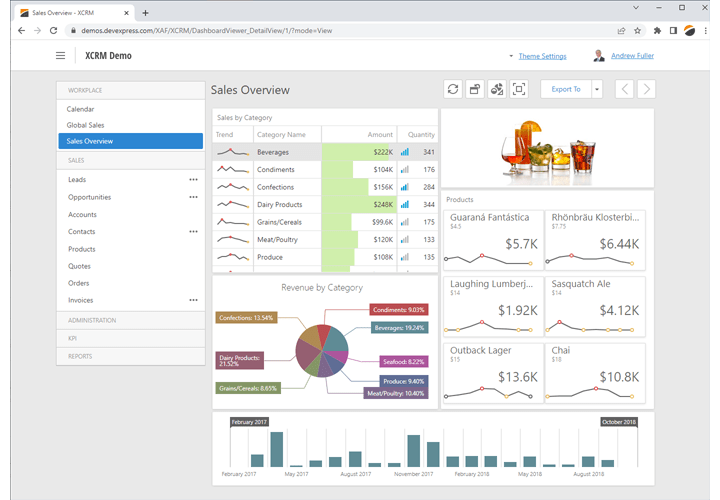 Generate your data model of any complexity from an existing database using XAF wizards, or define the model manually in code or using the visual scheme designer. XAF automatically generates a final and fully customizable UI based on your data model. This includes everything you need: various data forms, menus and app navigation, reporting, charting, analytics – powered by award-winning DevExpress controls and libraries. When user requirements or the context of use change, the data model changes accordingly and so does the supporting UI.