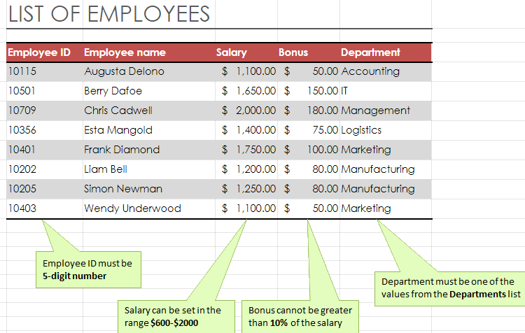 The DevExpress ASP.NET Spreadsheet control gives you the total control over cell editing. Our Excel-inspired Data Validation engine helps reduce data entry errors, improve accuracy and data consistency when modifying worksheet cells. The validation engine has been designed so you and your end-users can easily define restrictions and provide notifications as to what can be entered into spreadsheet cells.