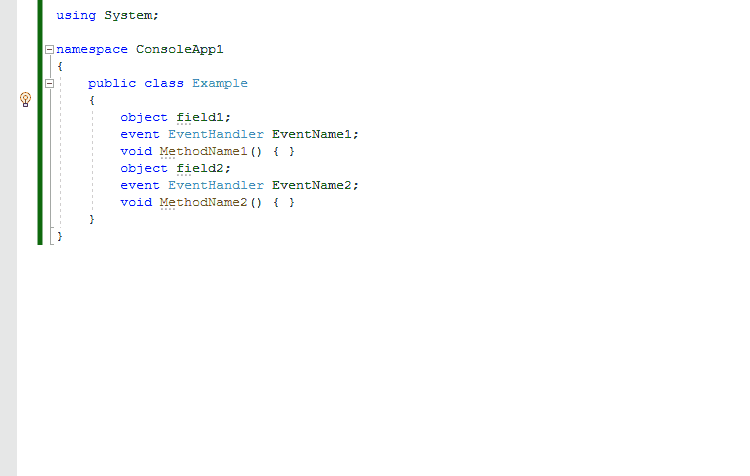 Organize Members sorts members by name and visibility, and groups members by kind (methods, properties, etc.). Want to keep all the members that implement a particular interface together? No problem. Need all your event handlers in the same place? Easy. Organize Members can also surround member groups in named regions (e.g., "#region private fields..."), or start member sections with an optional comment header (e.g., "// public properties..."), if desired.