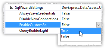 DevExpress.DataAccess.Sql.SqlDataSource.AllowCustomSqlQueries = true;
