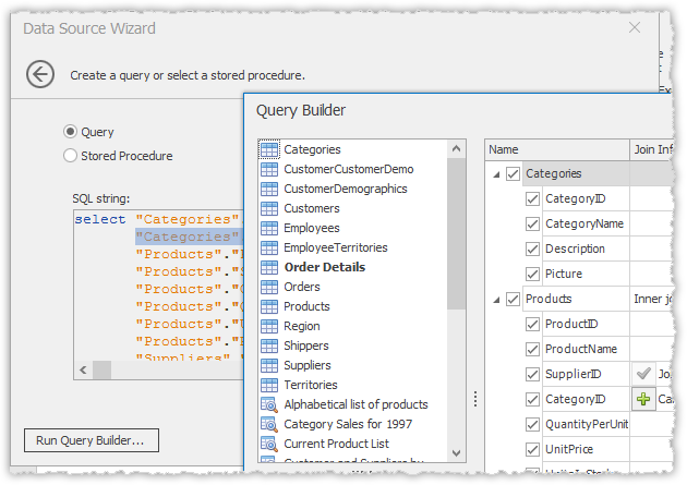 Much like the previous example, the SQL statement editor will be read-only by default. You can access options in code when you invoke the wizard. Here's how to enable the editor and invoke the Data Source Wizard: