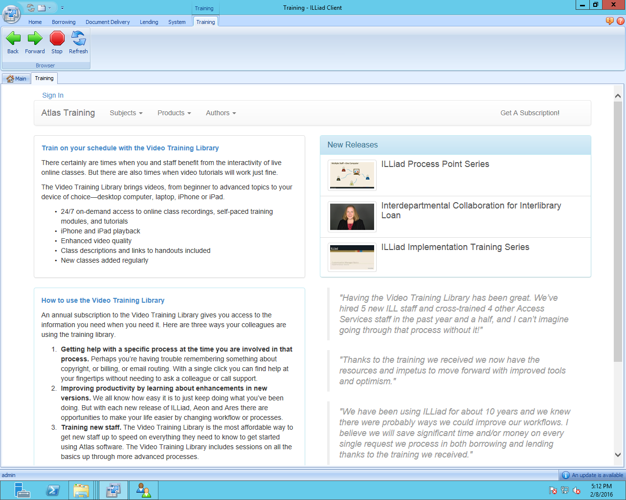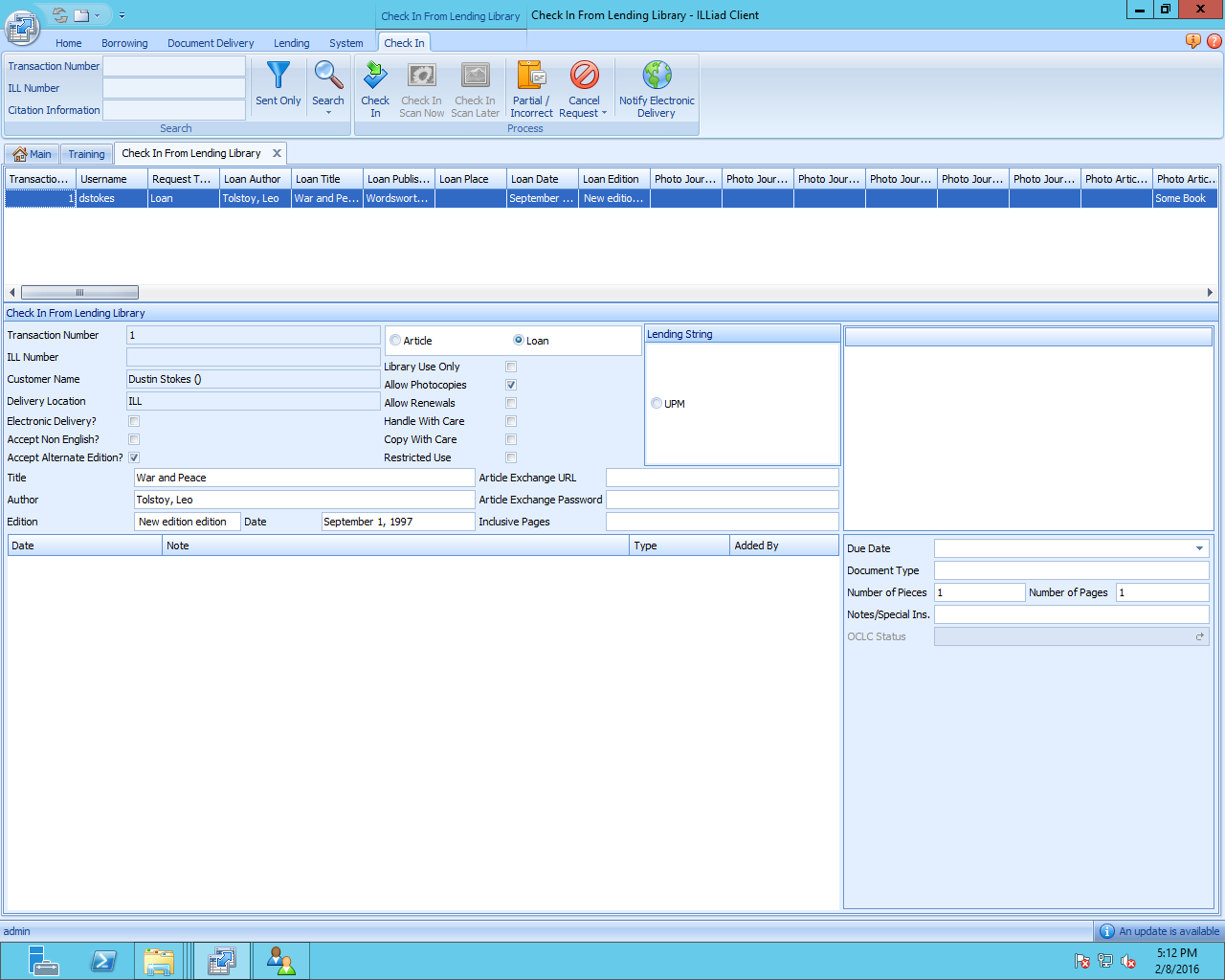 Our ILLiad resource sharing management software automates routine interlibrary loan functions to increase productivity and reduce paperwork. Using ILLiad, library staff can manage all of their borrowing, lending and document delivery through a single, Windows-based, client/server interface.