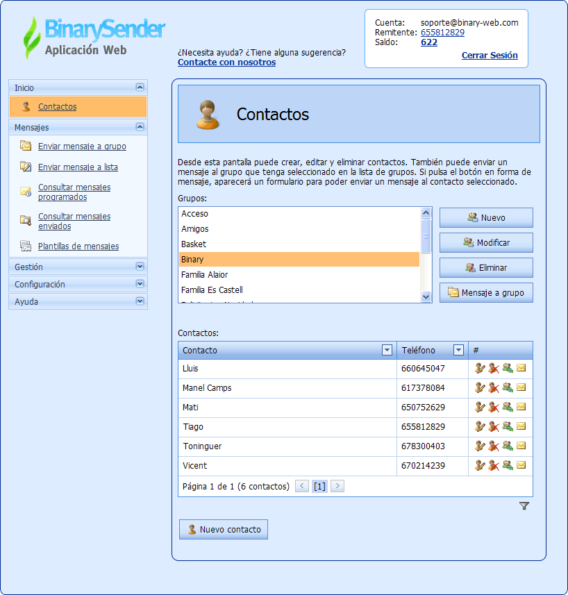 The CRM module is also integrated with the web application through the www.binarysender.com website which will send SMS messages to mobile devices and check the status of those messages.