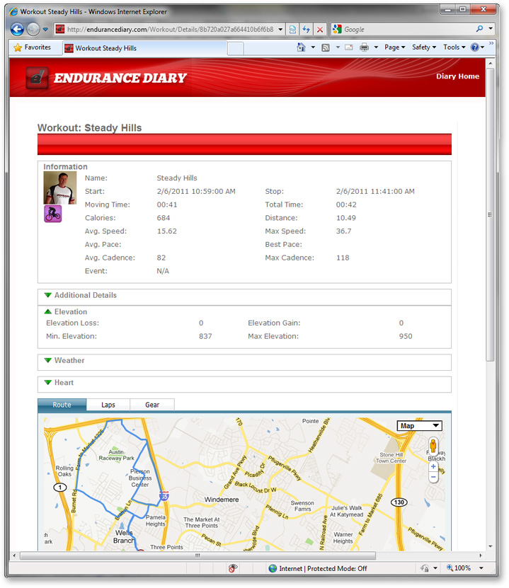 You might be wondering about security. As a good custodian of others data we take security very seriously. An individual workout can be made (Public, Friends Only, or Private) which is workout independent. Most of the other sites I have used are a one or nothing type of security meaning all of my workouts follow the Public or Private model. I may have one workout that I want to display publicly yet another that I want Private or viewable by my other friends on Endurance Diary only; in Endurance Diary I can do this. We have also implemented additional layers of security for workouts. For example, say I want to make my workout public yet I don’t want people seeing my route as it may be personal. This is not a problem in Endurance Diary, the Route has its own layer of security as well and can also be made (Public, Friends Only, or Private).