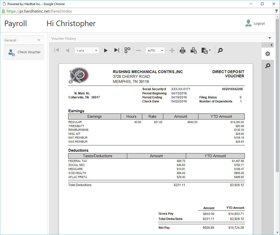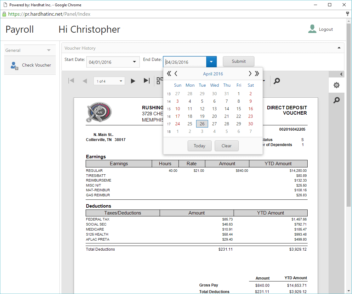 The purpose for creating the Hardhat Payroll website was to eliminate the need for paper check vouchers. The payroll website allows employees to view their paycheck history from any device at any time.