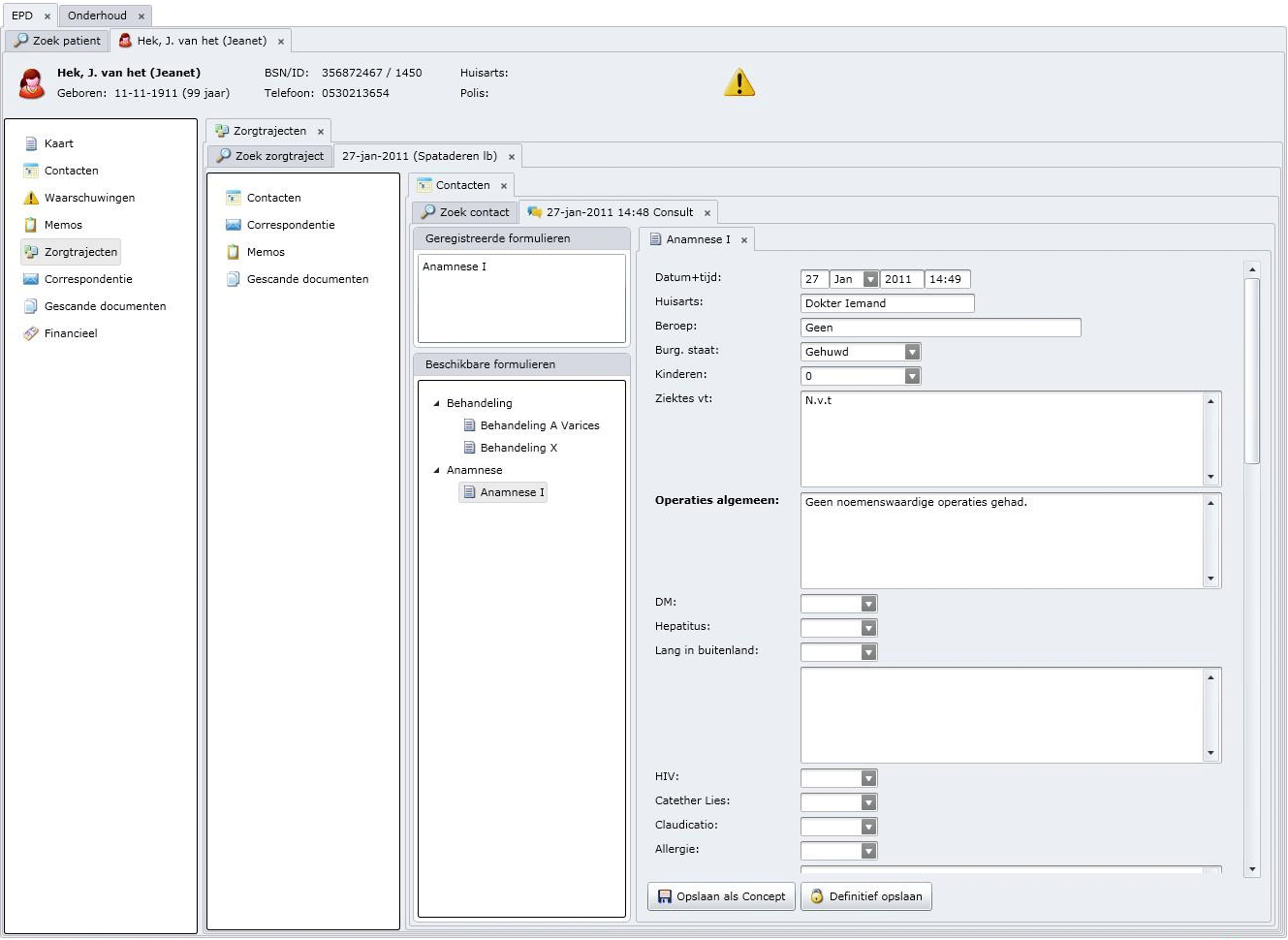 Being able to register and update personal health records of patients is core functionality within Medistration. Our solution offers the ability to record basic patient information, memos, warnings, correspondence and scanned documents. Also - the most important aspect of this part of our solution - every time a physician (or other medical personnel) has contact with a patient, specific (medical) information can be stored within a Contact record.