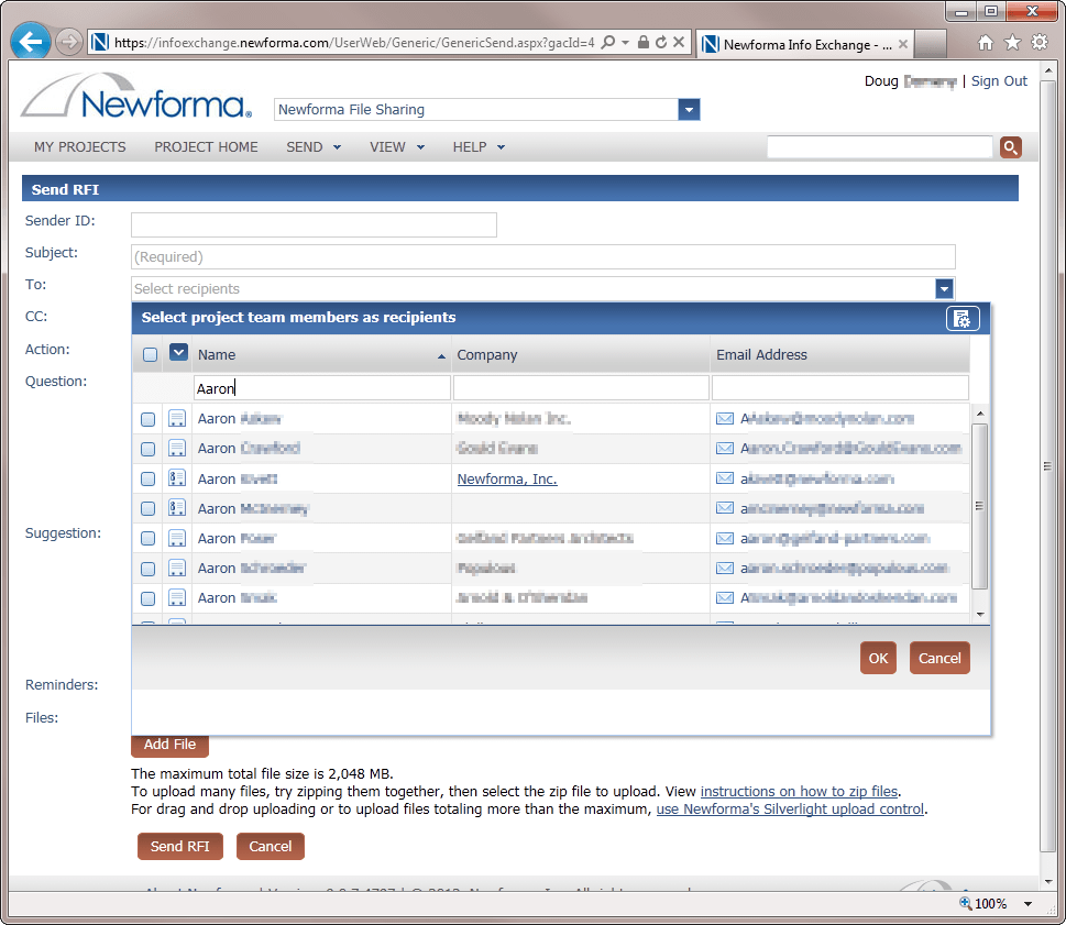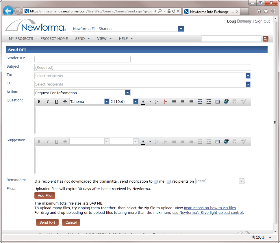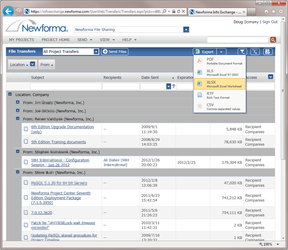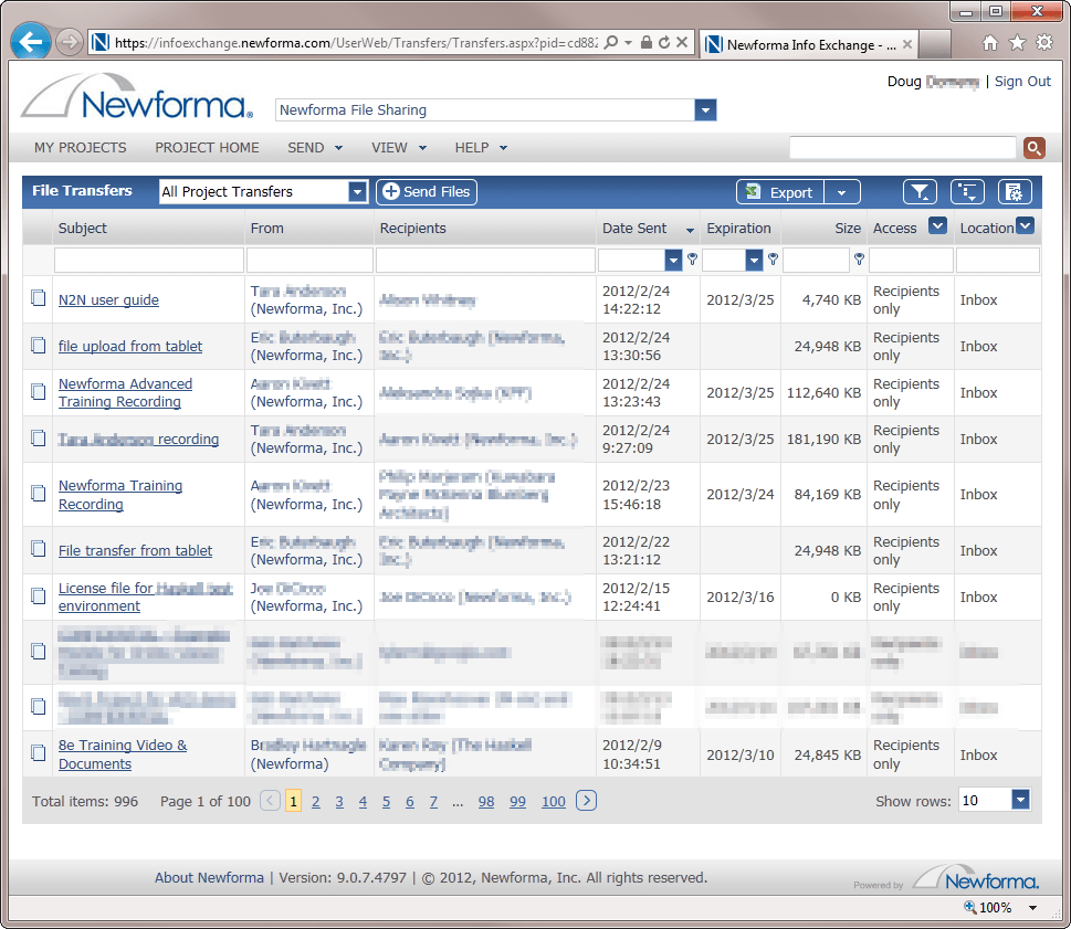 The Newforma Info Exchange web application is a secure site hosted by our customers for their clients as a portal to access and update project information.