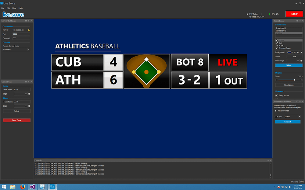 Live Score is software for professional sports teams that helps to display scoreboards on TV programs, live streams, team websites or anywhere else. The system contains a Windows application for hosting the scoreboard layouts and remote controls apps for iPhone and iPad.