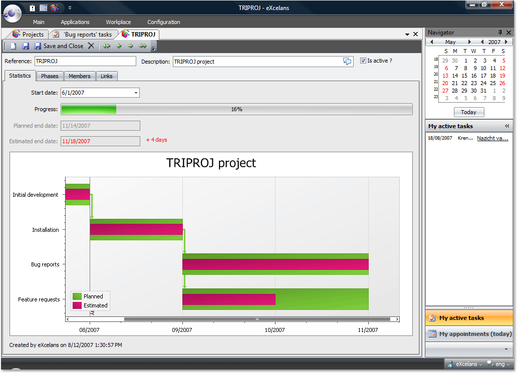 For the TRIPROJ module, they wanted to be able to display the project and the item groups in a user-friendly and understandable way, and not just a treeview or a grid. They were already thinking of building some component themselves, when they browsed the XtraCharts demos and fell upon the Gantt chart, which is exactly the kind of chart they wanted to present to their users. They found the solution, even before it became a challenge!