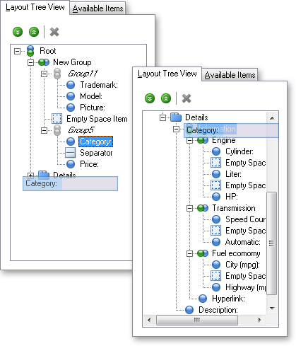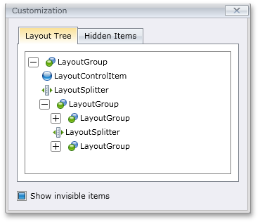 - Automatic tree expansion when dragging. In the Customization Form, a collapsed layout group is automatically expanded if a dragged layout element is positioned over the group's caption.