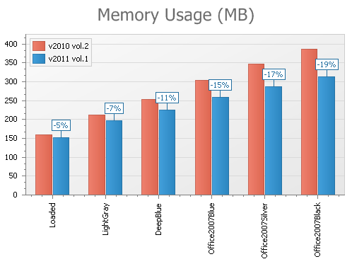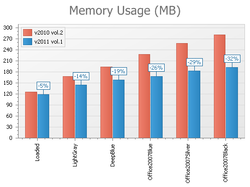 With this release, we have significantly improved print and export performance and memory usage. These optimizations affect all DevExpress Grid and Pivot Grid controls (XtraGrid, XtraPivotGrid, ASPxGridView, etc). You will see improvements of 80 to 99% when compared to previous versions. The following are internal test results: