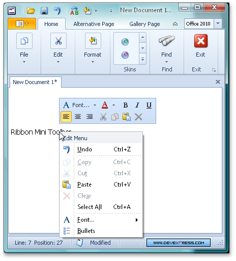 We've now incorporated this behavior into our new Ribbon Mini Toolbar, a floating toolbar that will allow you to display context-specific commands in your applications.
