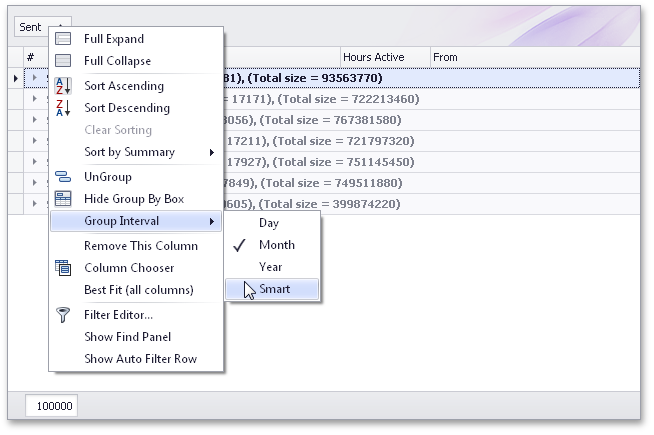 We have added support for group intervals for date-time columns in server mode. You can now change group intervals using a single property setting in server mode.