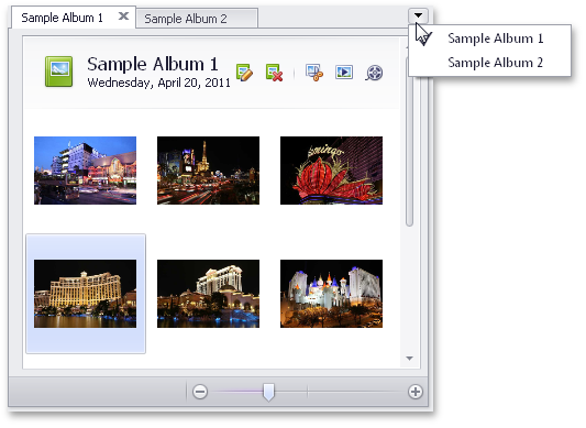 - Drag-and-drop tab indicators. To help ensure that a tab is dropped in the correct location, the page control uses drop indicators to display possible drop locations when dragging the tab.