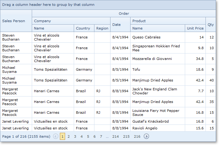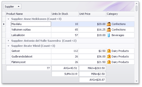 You can now calculate multiple summaries for a single column and display them simultaneously within the grid's footer: