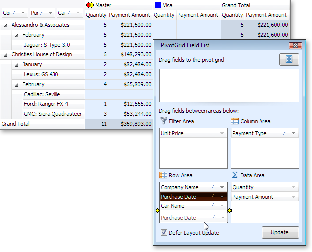 By default, end-user actions in the Customization Form automatically result in updates to the View. Optionally, update commitments can be made explicitly by the end-user. For this purpose, the Customization Form provides a "Defer Layout Update" check box and an "Update" button at the bottom.