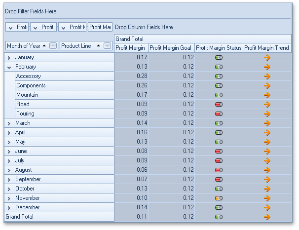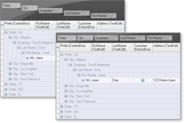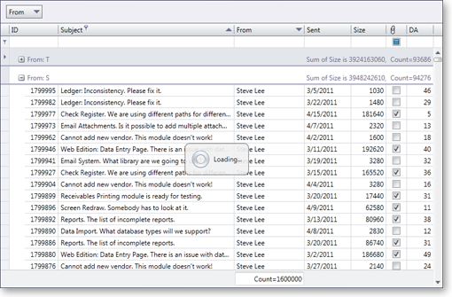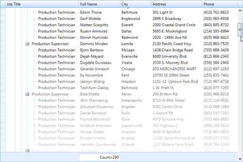 We have implemented a new scroll mode for the XtraGrid – perfect when viewing large amounts of grouped data. When using this new scroll mode, the top row for the visible group will always be displayed as you scroll through grouped data. Additionally, an icon is displayed in the top group row to indicate that the grouped data is only partially displayed: