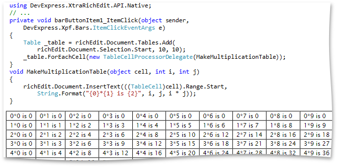Table Support. You can nest tables, insert and remove rows, and apply formatting to individual cells.