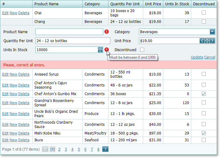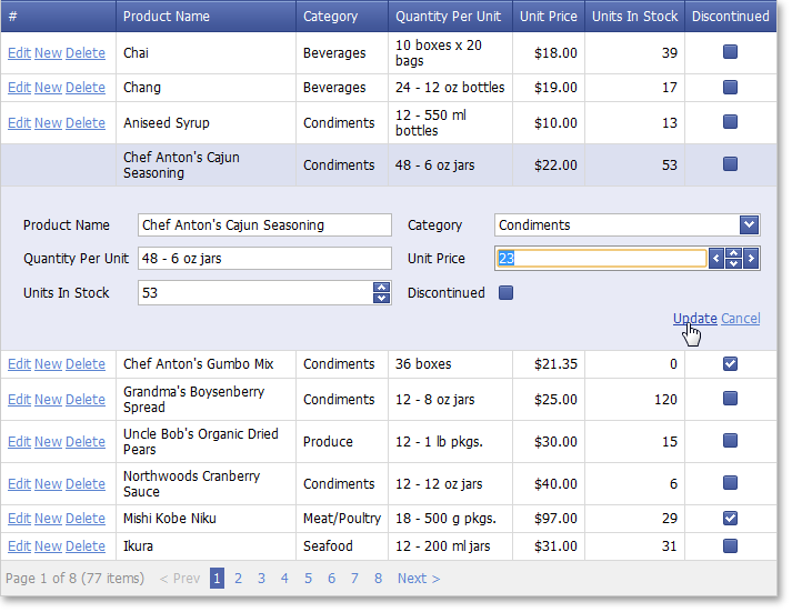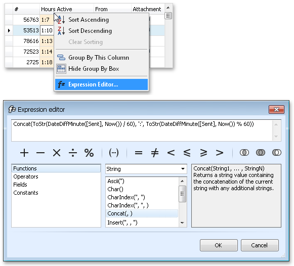 With this release, unbound grid columns can be populated in server mode with data obtained from expressions. You can specify a formula referencing other columns and using many built-in functions and operators.