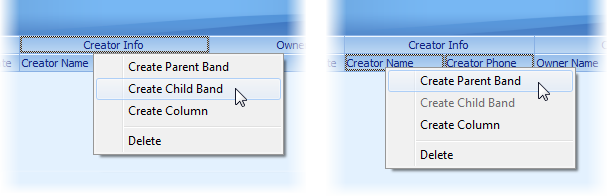We have implemented a built-in context menu for bands in a grid's Banded Views. This menu contains general commands that are used to work with a View (these commands were previously available only in column context menus):