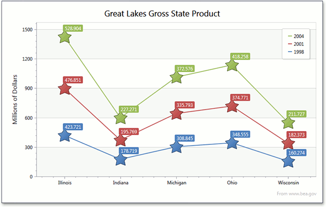 Stacked Line, Full-Stacked Line, Step Area and Range Area series are now available both for 2D and 3D Chart Types.