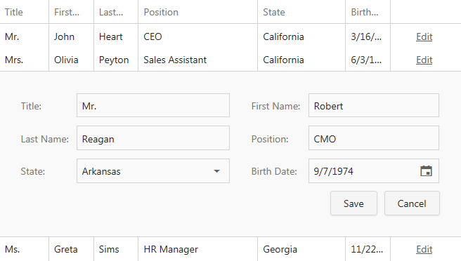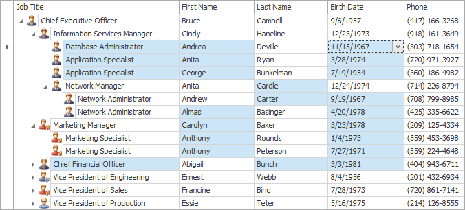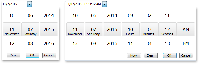 A new touch-friendly editor whose wheels can be swiped or scrolled to select the corresponding parts of a date-time value. The editor features smooth animation, mouse wheel and touch gesture support. Unbound, data-aware, standalone, and in-place versions of the Date-Time Wheel Picker are available.