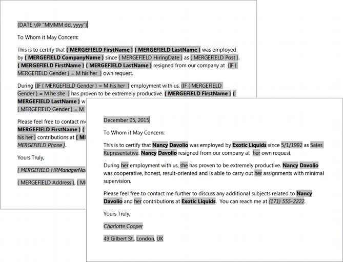 - Mail merge support