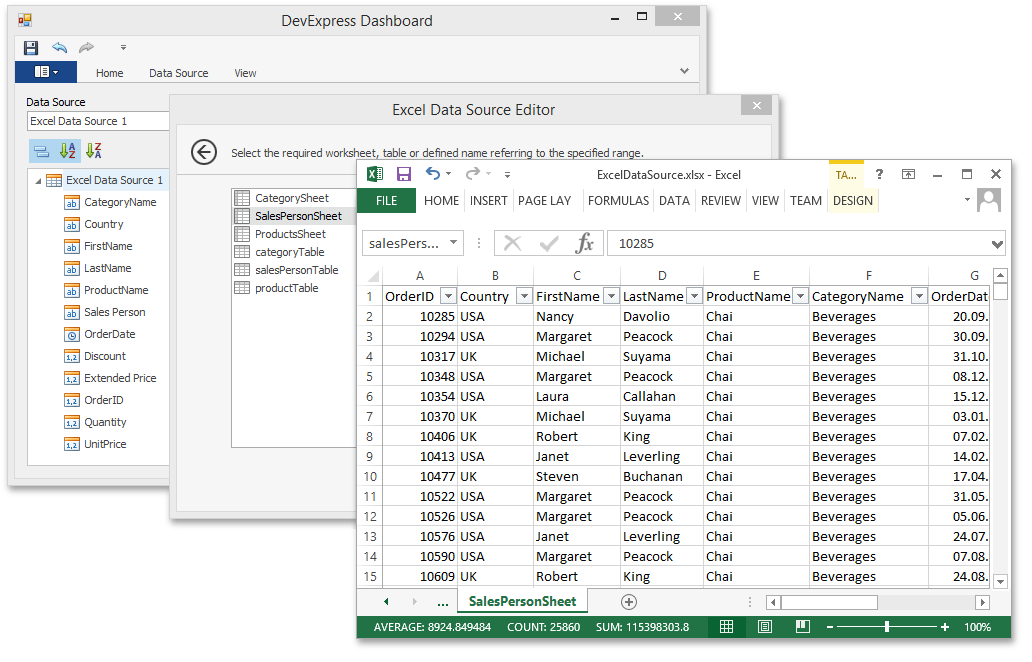 With this release, you can use our new WinForms ExcelDataSource component to bind DevExpress WinForms data-aware controls to Microsoft Excel workbooks and CSV files (a worksheet, table or named region).