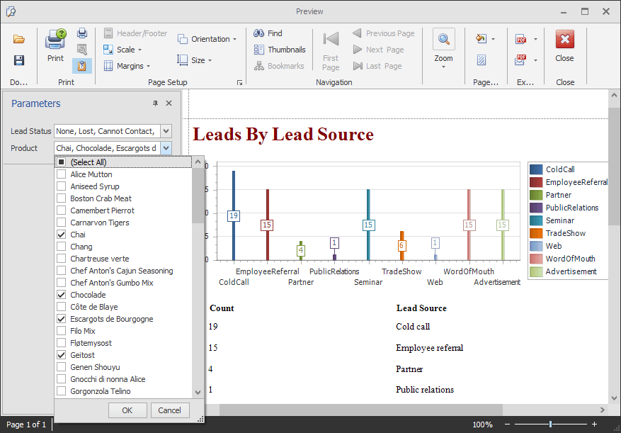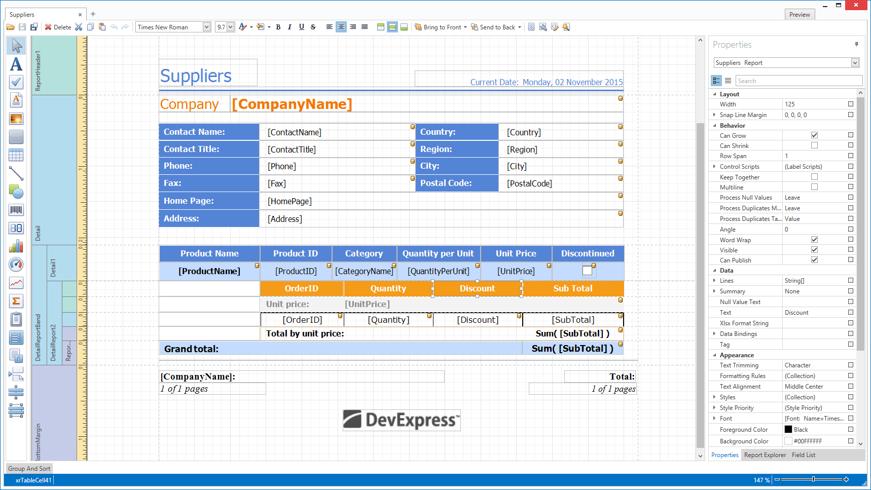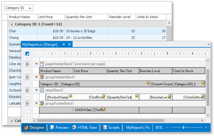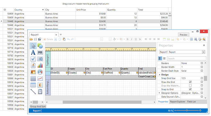 This release ships with a new WinForms Grid-based report generation option. With only a few lines of code, you can invoke the DevExpress WinForms Report Designer from the Grid Control and create reports based on its data.