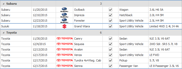 With v15.2, you can anchor group rows to the top of the Table View or Banded Table View so that scrolling through their content doesn't take them out of view. This is especially useful when groups contain a number of data rows. Anchored group rows display a special icon to indicate that their grouped data is partially visible.