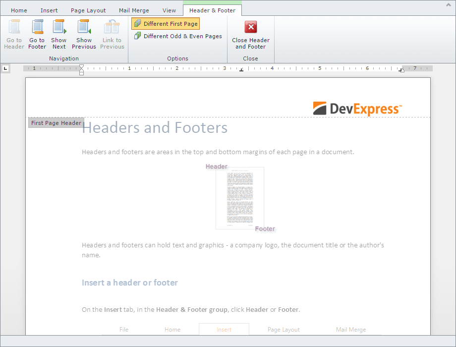 - Page headers and footers