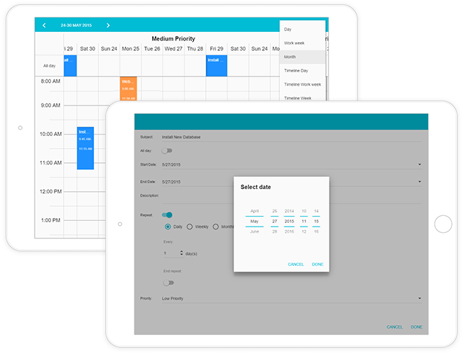 Our Date Editors now provide a touch-friendly drop-down calendar featuring the date-time wheel picker introduced in this release.