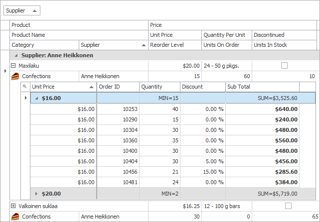 This new option allows you to display group rows with two or more data rows. If a group row contains only a single data row, it is not displayed.
