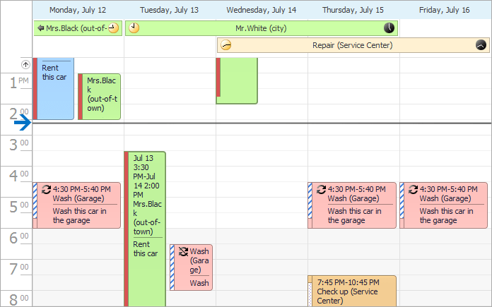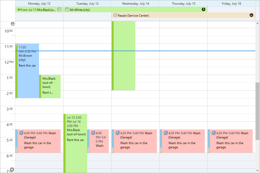 Our Scheduler now indicates current time. In the Day, Work-Week and Full Week views, current time is indicated by a horizontal line that can go across the entire view or can be restricted to the current date. In the Timeline view, the time indicator is represented by a vertical line drawn across the view.
