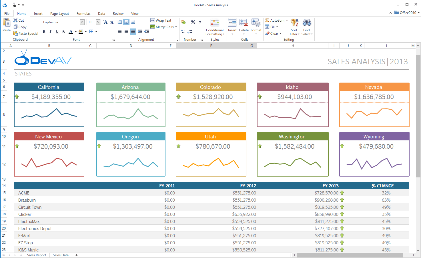 - You can now create Sparkline groups of different types and adjust their formatting and scaling options.
