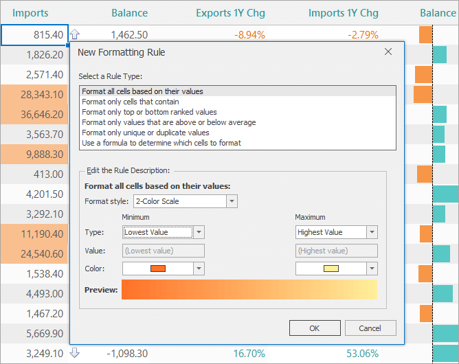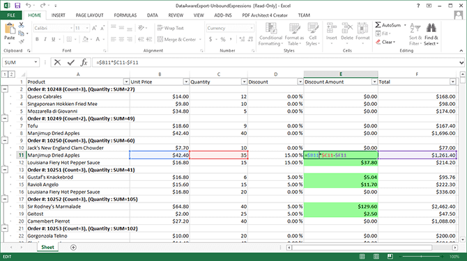The new data-aware export is optimized for subsequent analysis of grid data within Microsoft Excel. The following data shaping options that are applied within the grid control are retained in the output XLS and XLSX documents.