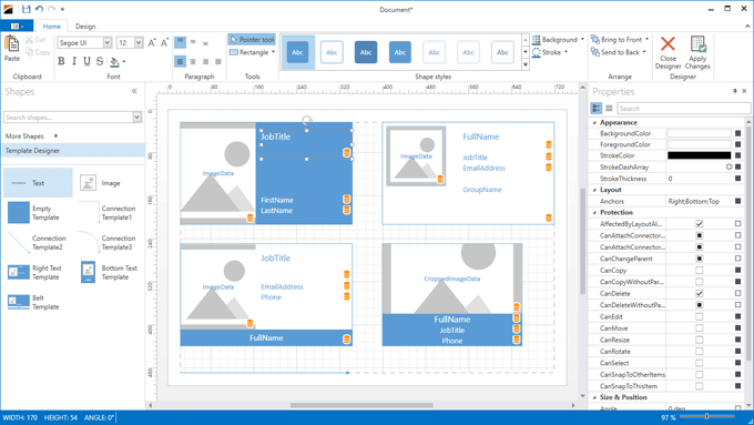 Our new Template Designer for Visual Studio allows you to create templates for diagram items bound to data (including OrgChart elements).