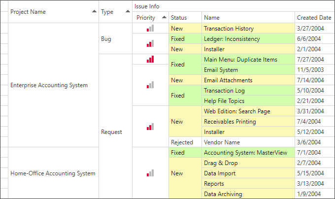 This release introduces a new data grouping mode that enables you and your end-users merge grouping columns, allowing for a more compact row list. Pressing and holding the Ctrl key while dropping a column header adjacent to another one located in the Group By box merges the two columns.