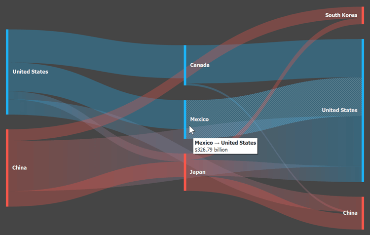 The Sankey Diagram control includes dozens of UX configuration options so you can deliver the best possible data visualization experience.